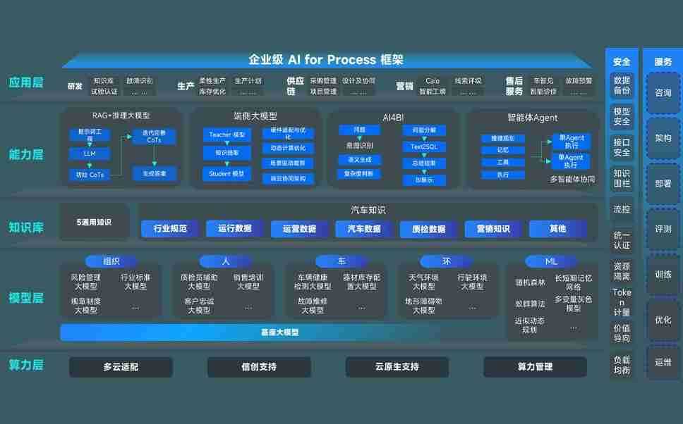 天辰平台问学智车解决方案是一套基于AI技术的汽车行业智能化系统,,覆盖从底层算力到顶层AI应用的全栈方案。。。方案由算力层、、、、模型层和应用层组成:算力层,,,,方案支持多种一体机配置,,,具备云端灵活部署、、、多云适配以及动态优化计算资源的能力;模型层,,天辰平台问学平台版提供了企业级AI应用一站式构建与管理平台,,支持基于后训练强化技术的汽车企业专属模型的训练、、、、评测和运营;应用层,,天辰平台问学DeepSeek版提供包括超级员工、、智能招采、、、、智能营销、、、、智能客服、、、AI for BI等一系列解决方案,,可助力汽车行业实现数字化转型,,,让管理更智能、、响应更敏捷。。。